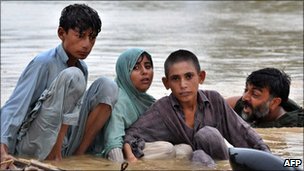 The BBC's Lyse Doucet, who is travelling through some of the worst-hit areas, says at least half a million people remain marooned on islands of high ground, while others have taken refuge in mosques and schools.