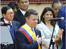 He said the work of his predecessor in office, President Alvaro Uribe, had paved the way for "a new dawn for Colombia".