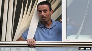 A man identified as Mr Injaz was later photographed looking out of one of the building's windows.