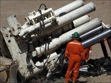 The special hydraulic bore which will be used to drill an escape shaft down to 33 miners trapped in a Chilean mine is being assembled at the site.