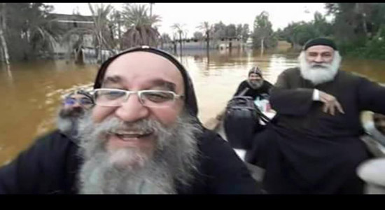 Couple of monks at the Syriac monastery in Wadil Natroun decided to take a selife inside their boat in the streets of the monastery.