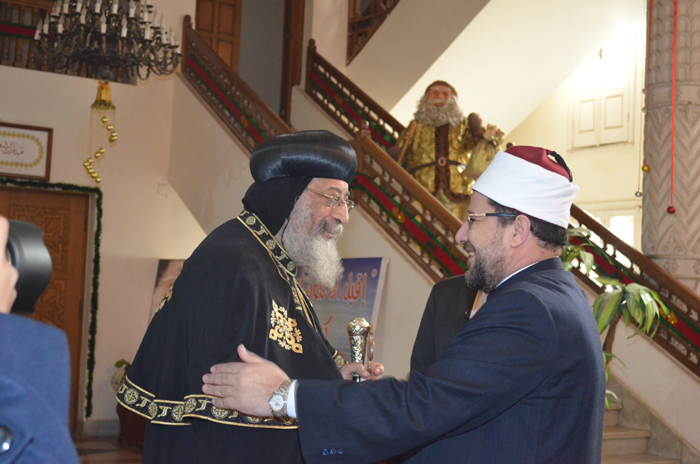 It explained that the visit came to congratulate Copts on Christmas, which is a worldwide occasion that coincides with birth of Prophet Mohamed.