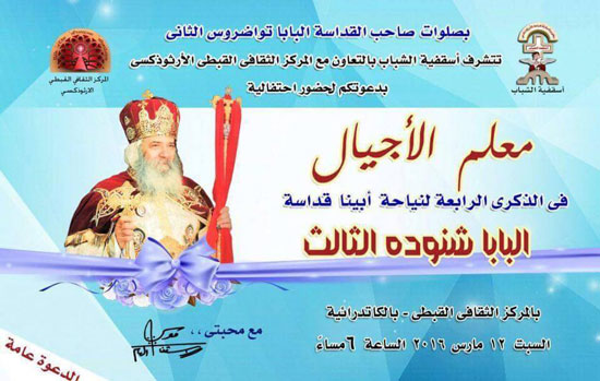 Youth Bishopric announced it’s going to celebrate the fourth anniversary of Pope Shenouda’s departure.