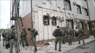 Militants struck at around 0845 (0445 GMT), attacking policemen guarding the building, Mr Kadyrov told Russian news agency Interfax.