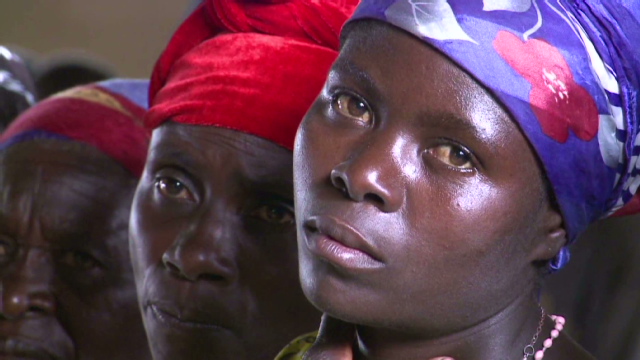 At Kahungu, another village in South Kivu, villagers outside their local church when CNN visited. There had been an attack the previous day and they had slept in the forest, afraid to return to their homes.