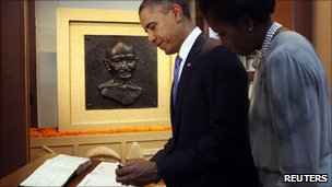 Security is tight for Mr Obama's visit. Thousands of Indian and US security personnel are deployed and a US naval warship is on patrol in the waters off the coast of the city.