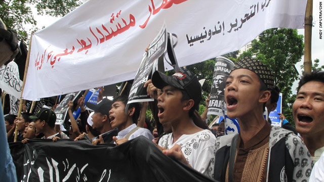 Jakarta, Indonesia (CNN) -- Muslims staged rallies across Indonesia on Sunday to protest U.S. President Barack Obama's planned visit to the southeast Asian nation this week.