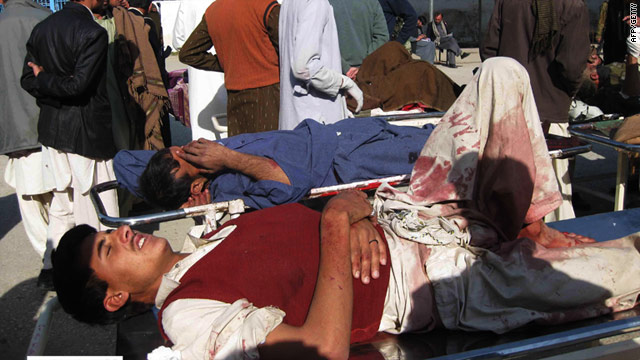The blast took place about 600 meters from a U.N. World Food Programme distribution point at a security checkpoint in Khar, according to Amjad Jamal, a spokesman for the agency. He said that more than 300 people were going through a security screening to get food and other items at the time of the explosion.