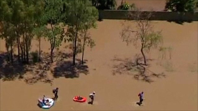 The crisis has been triggered by Australia's wettest spring on record. At least six river systems across Queensland have broken their banks. The floods have affected about 200,000 people, and many have been evacuated.
