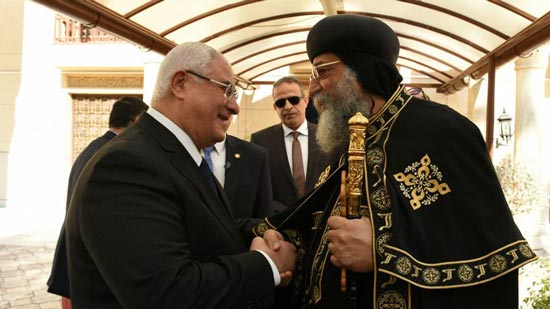 Pope Tawadros II, Pope of Alexandria, received today former acting president Adly Mansour at the Papal headquarters in Abbasia, who came to congratulate Copts on Christmas.