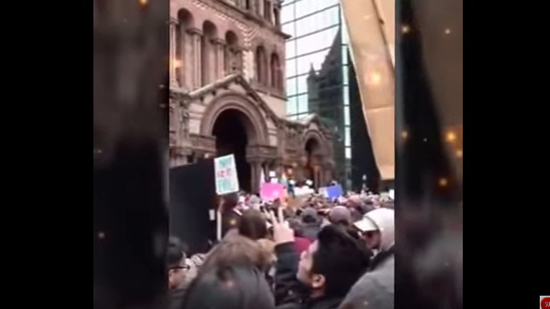 Protesters allowed Muslims to pray in the church to express solidarity after Trump has issued an administrative decision to ban immigrants from 7 Muslim countries.