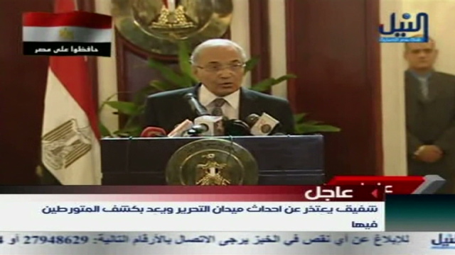 President Hosni Mubarak's newly appointed prime minister apologized repeatedly for the violence that rocked Cairo on Wednesday, which many believe was the work of pro-government thugs, and vowed to investigate.