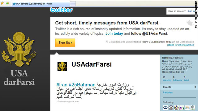 (CNN) -- The U.S. State Department launched a new Farsi-language Twitter feed Sunday in a bid to connect with internet users in Iran.