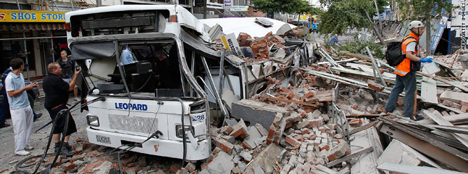 Police said that among the dead were people on two buses which had been crushed by falling buildings.