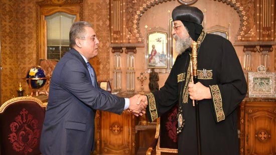 Pope Tawadros II, Pope of Alexandria and Patriarch of St. Mark See, received Ambassador Hazem Khairat, Ambassador of Egypt to Israel to discuss the issue of the Monastery of the Sultan.