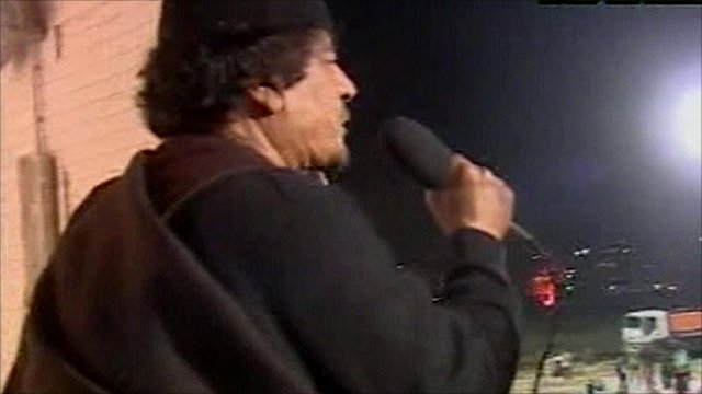 Speaking in front of a crowd of about 200 late on Tuesday, Col Gaddafi said there was a "new crusader battle launched by crusader countries on Islam".