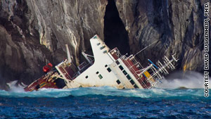 The dramatic rescue of the ship's 22 crew members was captured on video, along with the spills' aftermath, which showed penguins soaked in heavy oil.