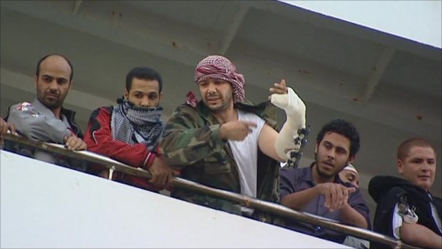 As the ship arrived in Benghazi several hundred rebel supporters waiting on the quayside chanted: "The blood of martyrs is spilled for freedom."