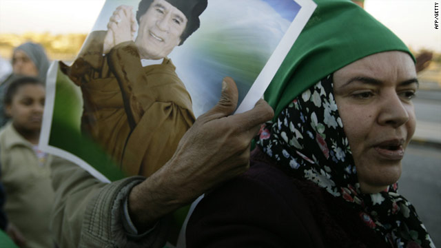 Libya's state-run television, meanwhile, aired images of a fist-pumping Gadhafi visiting what appeared to be a primary school in Tripoli. The anchor said the school was a target of international airstrikes and was going to be attacked.