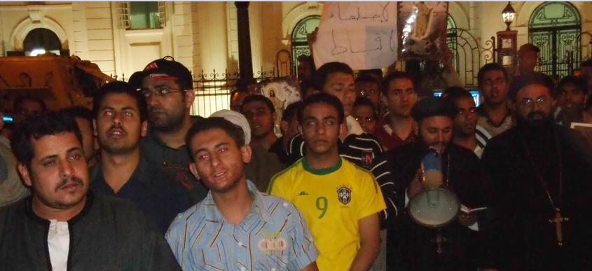 The latest of these incidents took place in the village of Kamadeer, in Samalout, Minya province on April 5, which escalated to the point where it was feared the church would be torched and demolished, as was done in the case of St. George and St. Mina Church in village of Soul, Atfif, on March 5 (AINA 3-5-2011). For three days Muslims occupied the entrance to St. John the Beloved Church in the village of Kamadeer with their mats, praying and sleeping there while thousands of village Copts staged a sit-in for three continuous days in front of the Minya governorate building, vowing not to leave until they got their church back. "Even if it takes one year, we will still be here," said Fr. Youssab in the rally. The Coptic demonstrators demanded the reopening of their church and prosecution of the squatters (video of Coptic sit-in).
