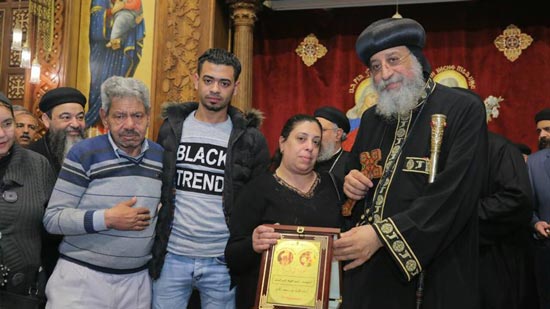 Pope Tawadros II, Pope of Alexandria and Petrarch of St. Mark See, honored the families of the martyrs of St. Mark church terrorist attack who were killed last year at Palm Sunday.