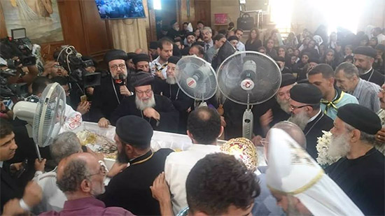 45 members of the Holy Synod of the Coptic Orthodox Church participated in the funeral prayers of Metropolitan Bishoy of Kafr El-Sheikh and Damietta and the head of St. Demiana Monastery, which was held at the monastery of St. Demiana in Belqas.