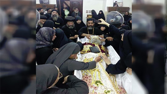 Thousands of Copts and Muslims attended today the funeral of the late Metropolitan Bishoy of Kafr El-Shiekh, Damietta, and head of St. Demiana monastery in Belqas.