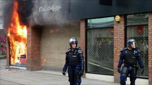 But there was unrest in cities including Manchester, Salford, Liverpool, Nottingham and Birmingham with shops being looted and set alight.