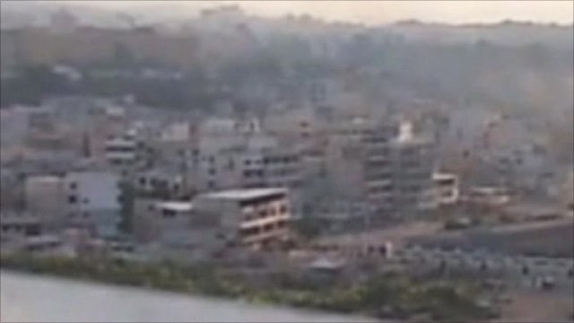 On Sunday activists said Syrian warships had joined the attack, firing shells on the city.