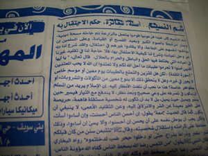 Spirit of life magazine issued by the Salafist movement in Beni Suef, which is distributed throughout a large number of mosques after Friday prayers, forbad celebrating Sham el-Nessim (a pharaonic feast). It said that it is a pharaonic feast which was related to agriculture then it became related to Christians; their great lent and the Passover (Easter).