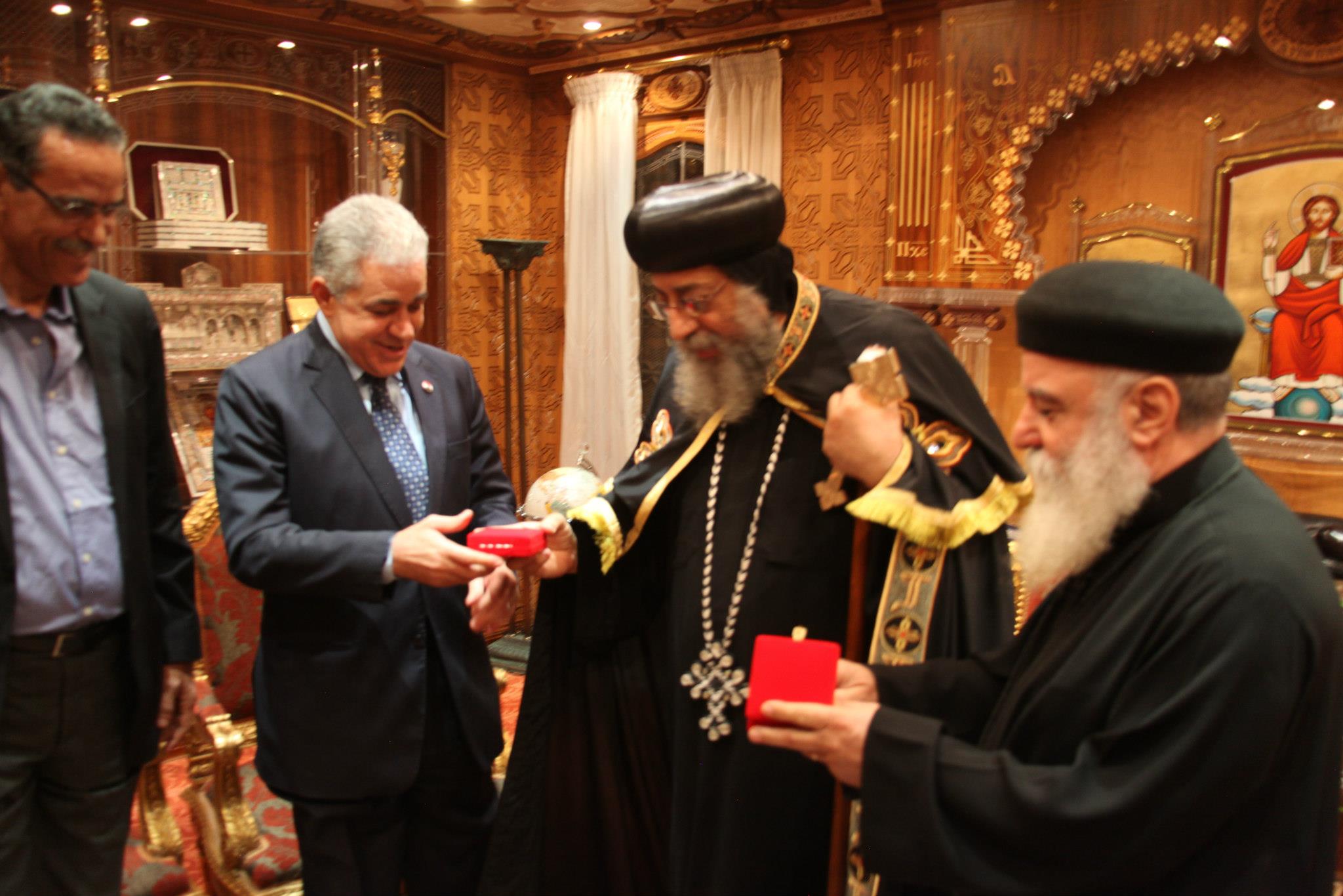 His Holiness Pope Tawadros II, Pope of Alexandria and Patriarch of Saint Mark See, has received Hamdeen Sabahi, founder of the Popular Current, and leaders of the Popular Current who congratulated the Pope on his official enthronement.They have discussed the great history of the Coptic Church and its relation with Al-Azhar moderate Islamic institution as well as the importance of drafting a constitution that grants citizenship, equality, and freedoms for all Egyptians.