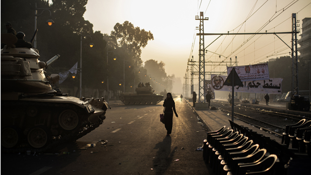 Anti-Morsi protesters shout slogans as they stand under the Egyptian flag in Cairo on Tuesday. The opposition is calling on supporters to vote no in this weekend's referendum. (Amr Abdallah Dalsh/Reuters)