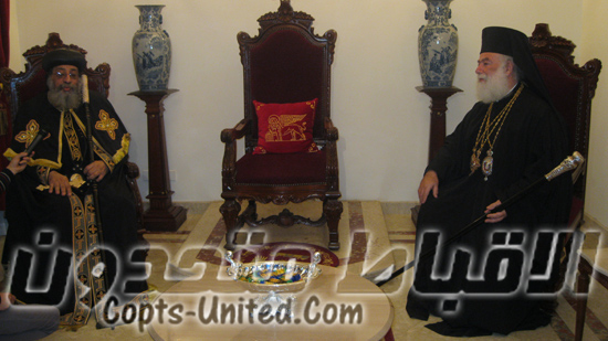 In his first official visit today to the Greek Orthodox Archdiocese as the Pope of the Coptic Orthodox Church, Pope Tawadros II has congratulated Pope Theodoros of the Greek Orthodox on the Christmas.