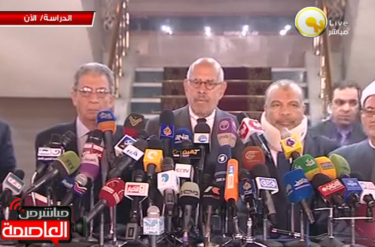 Dr. Mohammed el-Baradie, founder of Constitution party, called in the meeting to found a dialogue committee to ensure a serious and productive dialogue, adding that he is optimistic in spite of having so many obstacles.