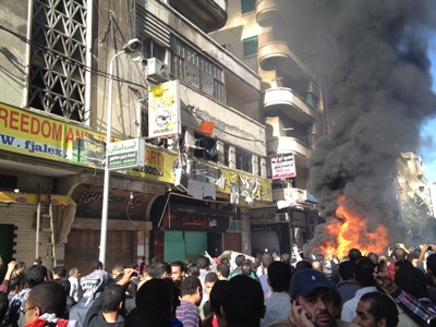 A march grouping hundreds of anti-Brotherhood protesters arrived on Friday noon at the headquarters in a demonstration several political powers had called for after supporters of the Brotherhood assaulted media workers and protesters last Saturday in the same place.