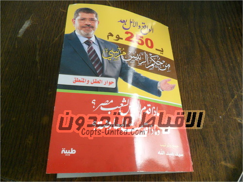 Freedom and justice Party in Beni Suef has distributed a book that talks about great achievements of President Mohammed Morsy in 250 days since he has won the presidential elections. It described President Morsy as a “strong man” because he could overcame the military rule - dismissed the former General Prosecutor - visited many countries all over the world - solved problems of Gas, security and bread - appointed many assistants from different spectra - protect freedom of speech and brought it to the next level.