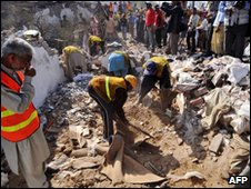 The BBC's Aleem Maqbool in Islamabad says the emergency services are working to free those trapped under the rubble.