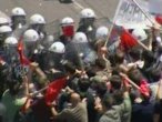Greek riot police have used tear gas to disperse angry protesters in Athens, during a march against government cuts to tackle the country's crippling debt.Clashes erupted at the finance ministry and a state TV truck was petrol bombed. A tense stand-off continues, with protesters hurling bottles and rocks.