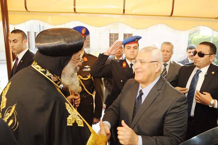 Pope Tawadros II headed a Coptic Church delegation to meet with Egypt’s interim president, Adly Mansour, to discuss the current situation and some national issues.