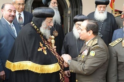 Field Marshal Abdul Fatah al-Sisi, Egypt's former Defense Minister, visited pope Tawadros II - Pope of Alexandria and Patriarch of Saint Mark See – to offer his sincere condolences on the death of the Pope's mother, who passed away on Friday.
