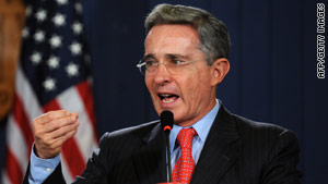 Uribe interrupted a televised press conference in the town of Quibido to answer a call from Gen. Oscar Gonzalez to immediately announce that the two hostages were in the hands of Colombia's military.