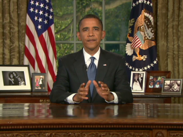 While Obama has dealt with major issues including the wars in Iraq and Afghanistan and a major economic downturn since taking office in January 2009, he had never spoken to the public from the Oval Office until now.