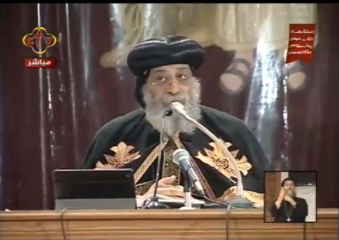 Pope Tawadros II, Pope of Alexandria and Patriarch of Saint Mark See, delivered his weekly sermon yesterday after it was canceled for nearly a month for his pastoral care visit to Europe and Canada.