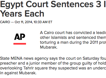 Cairo court has convicted a leading Muslim Brotherhood figure and two other Islamists and sentenced them to 15 years in prison each on charges of torturing a man during the 2011 protests against then-President Hosni Mubarak.State MENA news agency says the court on Saturday found Mohammed el-Beltagy along with a preacher and a junior member of the group guilty of holding and beating a man in an office overlooking Tahrir square they suspected was an undercover policeman spying on the 18-day sit-in against Mubarak.
