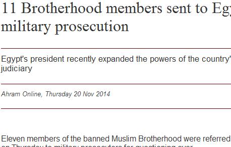 Eleven members of the banned Muslim Brotherhood were referred on Thursday to military prosecutors for questioning over accusations of rioting and planting a bomb in a court.