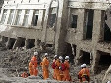 Buildings were hit by a wall of mud so mighty that buildings seven storeys high crumpled like paper, says the BBC's Chris Hogg, in Gansu province.