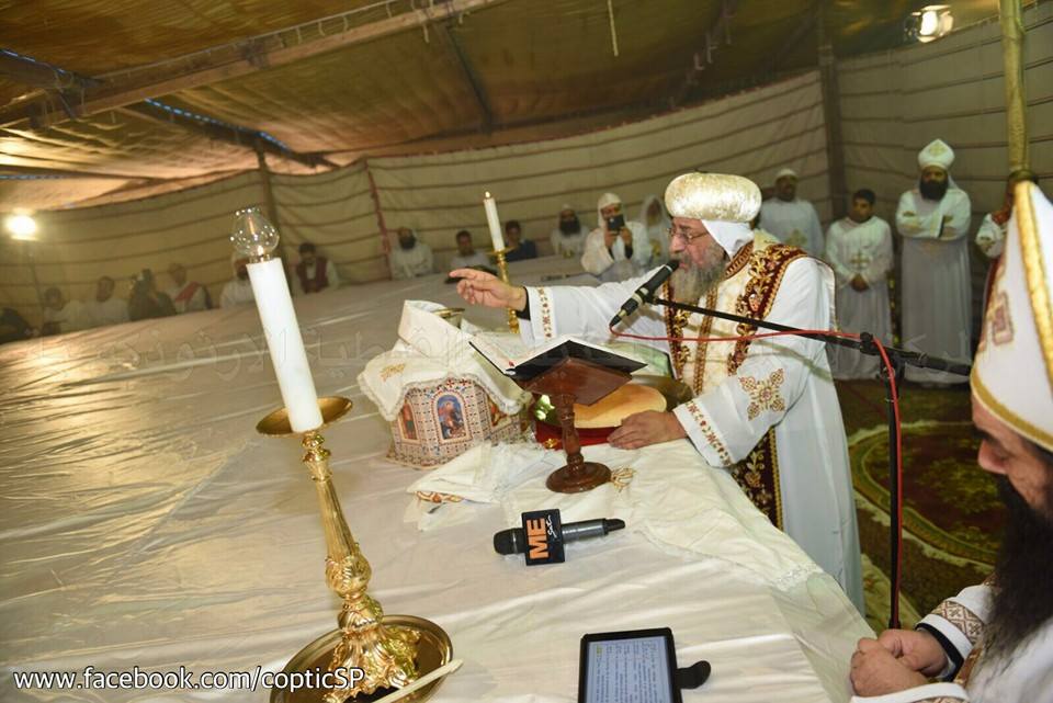 Pope Tawadros II, celebrated on Thursday the Holy Mass at the monastery of St. Mina in Mariout in memory of the martyrs who were killed in the church on New Year’s eve in 2010.