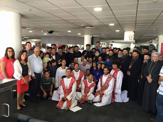 Bishop of Melbourne, deacons, and Coptic people at Melbourne received Bishop Moussa, Bishop of young people, with hymns at the airport to express happiness to see him.