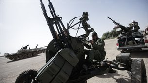 The BBC's John Simpson in Ajdabiya says rebel forces in Ajdabiya have been expecting an attack but with fighting continuing in Brega that may not be imminent.