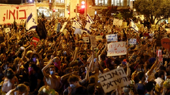 Thousands of people demonstrated outside Netanyahu s official residence in Jerusalem and hundreds gathered in a seaside park in Tel Aviv, demanding Netanyahu s resignation and slamming his response to the crisis.